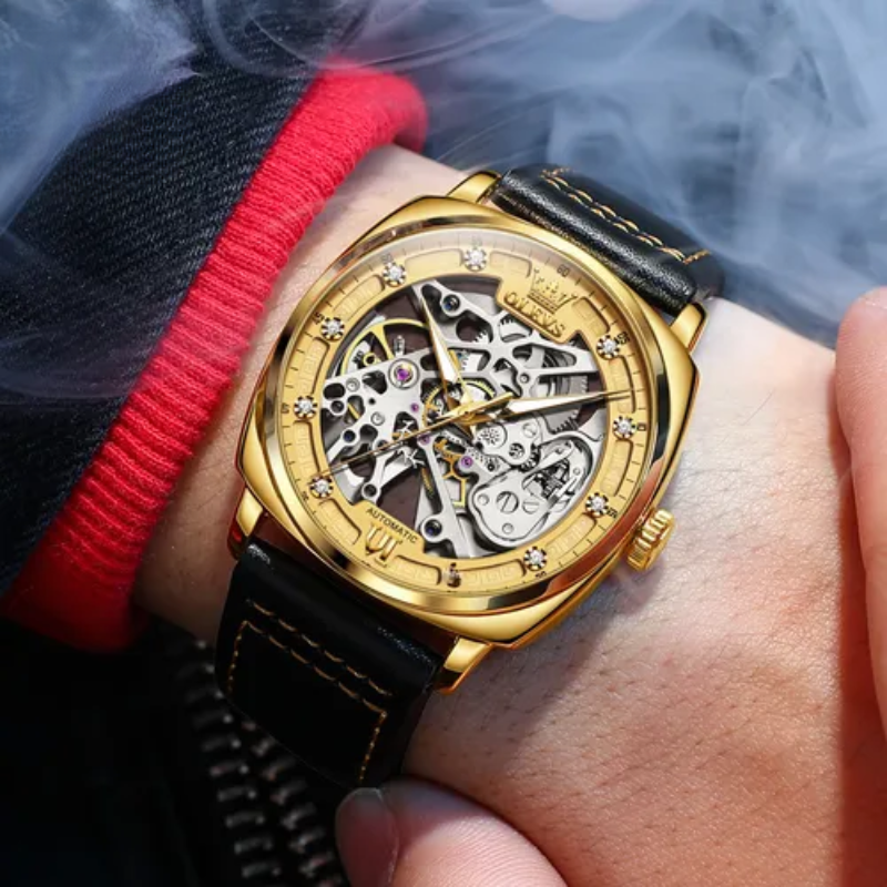 Equipado con un mecanismo mecánico importado, este reloj no necesita batería. Funciona con cuerda automática y también manual, garantizando un rendimiento estable y duradero. Su transparencia te permite admirar cada engranaje en movimiento.