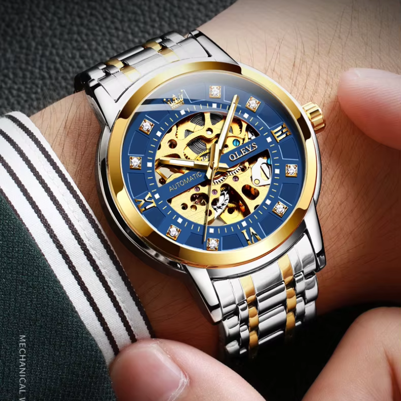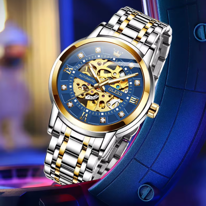 Descubre la elegancia del Z99, un reloj de lujo con diseño esqueleto de doble cara, textura metálica pulida y detalles en azul brillante que lo convierten en una verdadera joya mecánica. Su equilibrio entre estilo y precisión lo hace perfecto para el hombre moderno que aprecia la sofisticación en cada detalle.